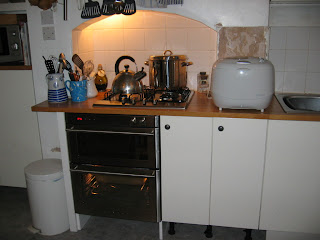 As of Friday, I can cook! Admittedly, things are still a bit unfinished, but now the oven is fitted, the little jobs like sorting out plinths, patching up tiles etc can all go ahead.